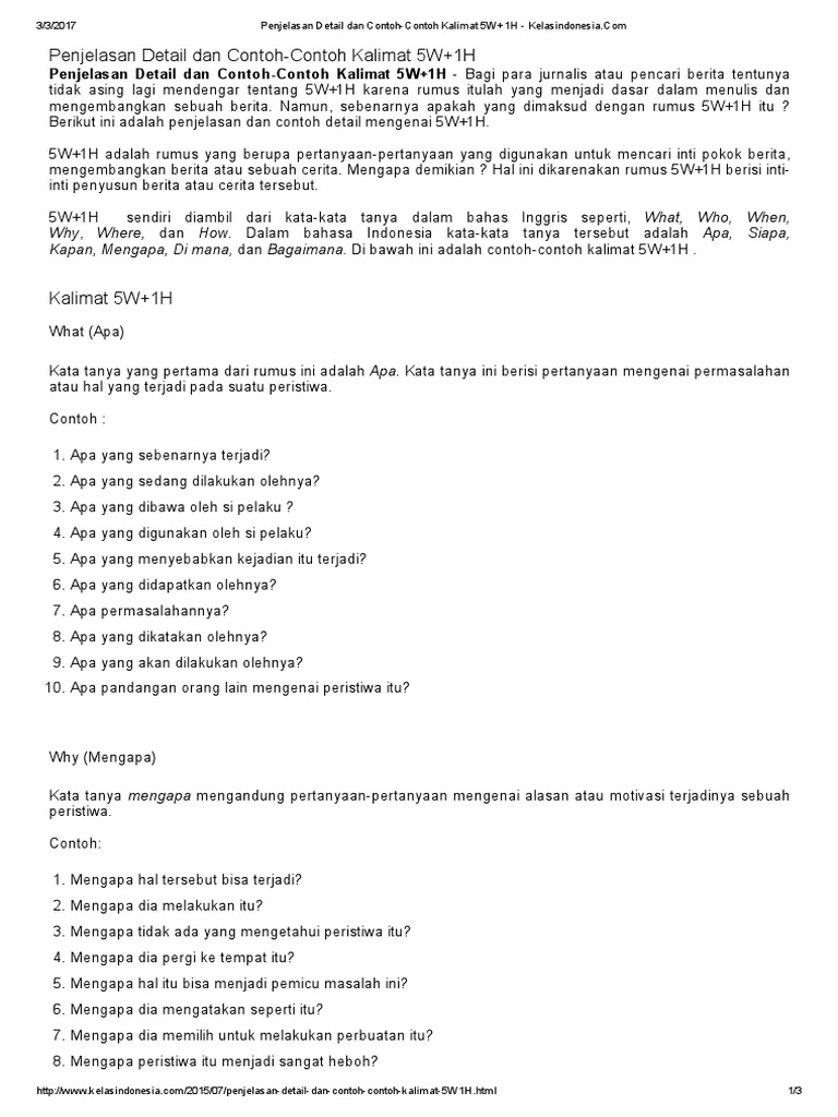 5w 1h adalah singkatan bahasa inggris yang merangkum 5 pertanyaan berikut: Kalimat tanya merupakan kalimat yang isinya menanyakan tentang suatu hal. Tidak hanya dalam bahasa indonesia saja, 5w+1h juga harus diperhatikan dalam struktur kalimat bahasa inggris. Kamu pengen tahu jenis kalimat tanya dalam bahasa inggris?simak beberapa ungkapan kalimat tanya yang biasanya kita temui dalam sebuah percakapan bahasa inggris berikut. Dalam bahasa indonesia dikenal dengan adiksimba adalah unsur yang digunakan untuk memahami sebuah berita. Advertisement kalimat tanya merupakan kalimat yang isinya menanyakan tentang suatu hal. Contoh kalimat tanya bahasa arab 5w 1h. 5w1h pada umumnya digunakan untuk mengembangkan suatu ide cerita baik itu berita, cerita fiksi. Sama seperti bahasa indonesia, di dalam belajar bahasa inggris, 5w+1h juga menjadi aspek penting dalam kalimat. Ada beberapa jenis kalimat tanya dalam bahasa inggris yang bisa kamu terapkan, lcers. Berbicara tentang formula penulisan deskriptif dalam bahasa inggris, yang perlu kita ketahui adalah 5w + 1h selain itu, fungsi dari arti kata ini juga dapat menjadi unsur penjelas setiap deskripsi agar kalimat lebih. Oleh karena itu, kata tanya ini lazim disebut 8w + 1h. Oleh karena itu, kata tanya ini lazim disebut 8w + 1h.